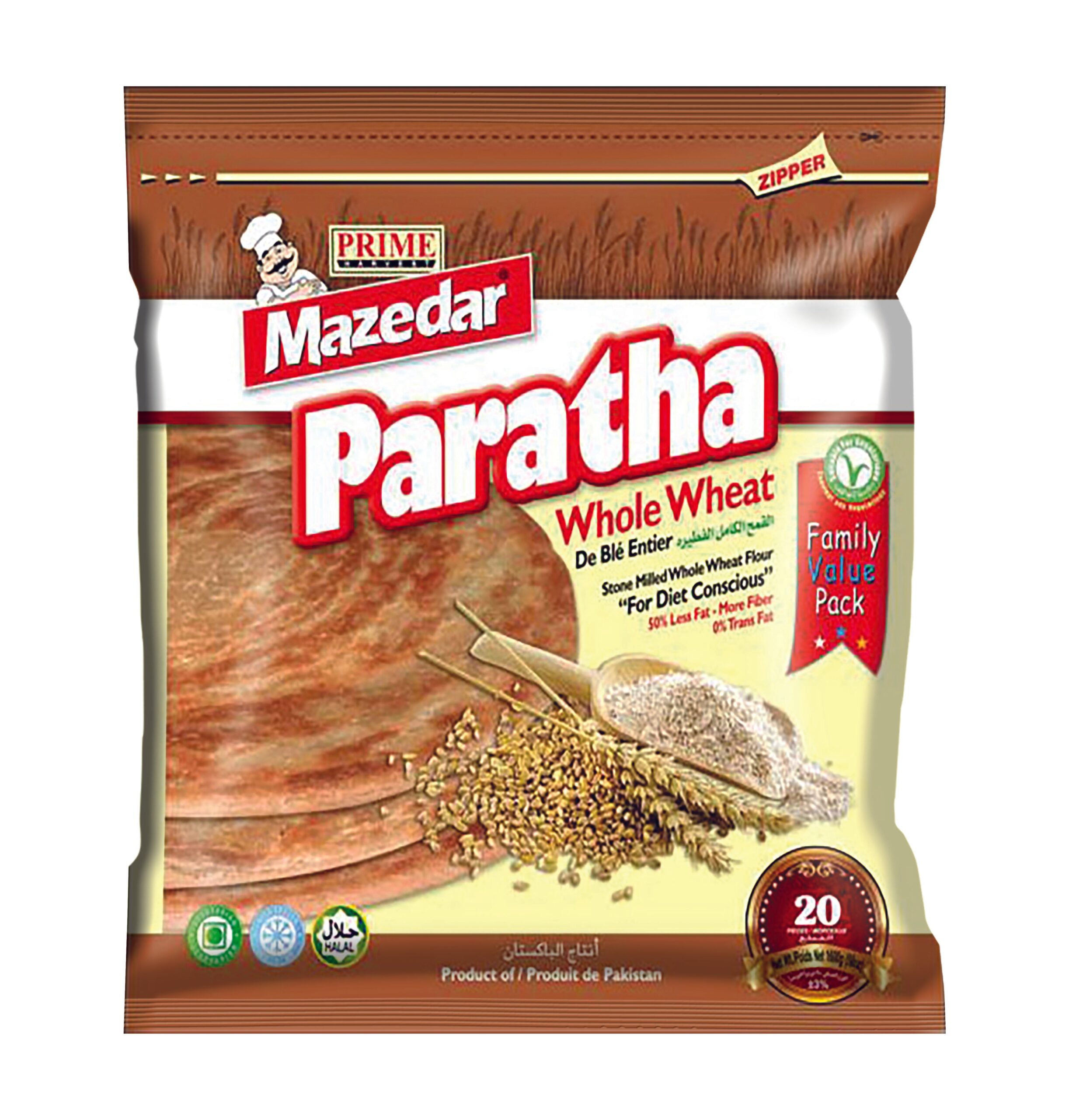 Mazedar Whole Wheat Paratha (Value 20Pcs Pack) (10x20PCSX1.6KG)
